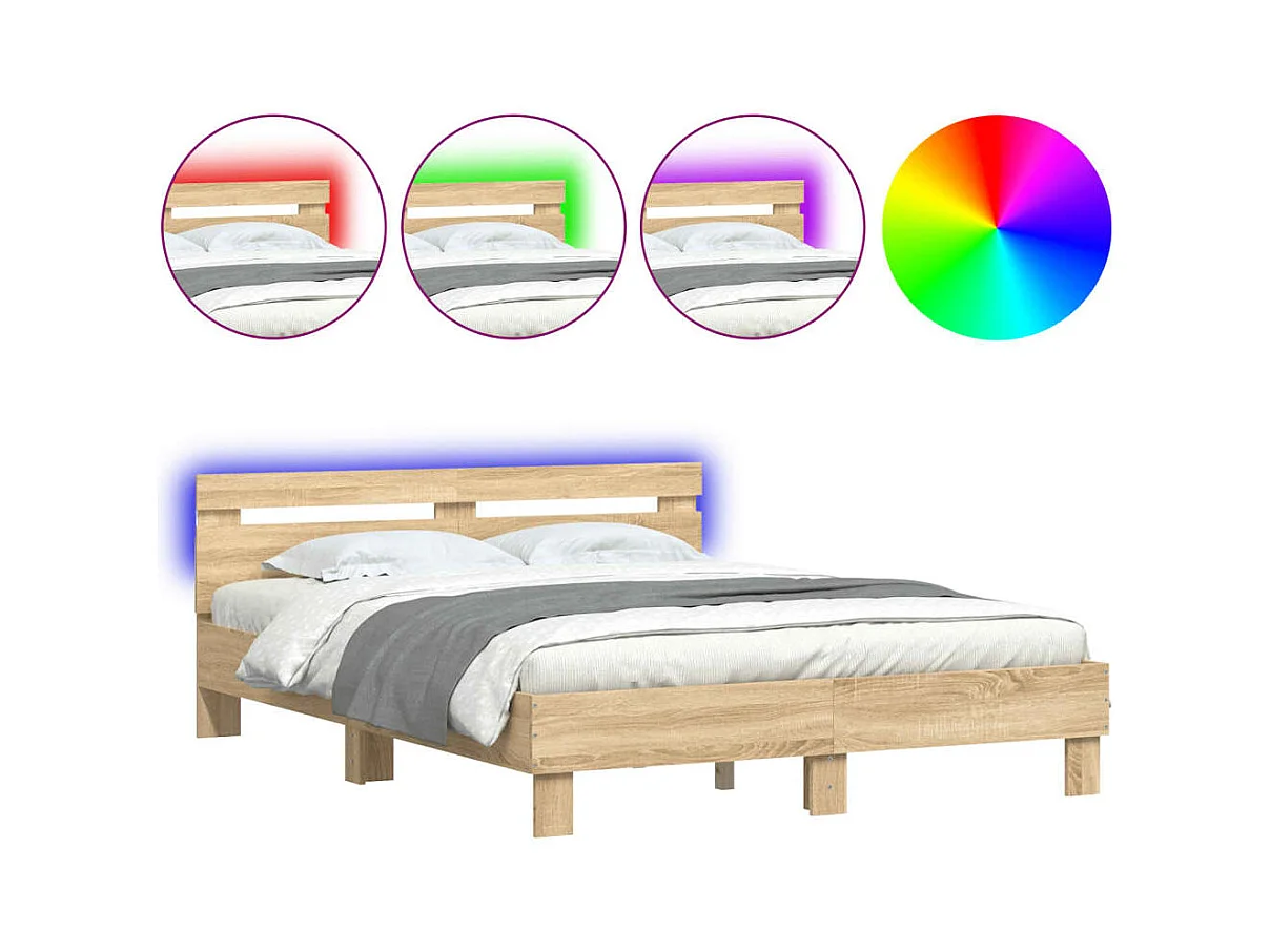 Estructura de cama con LED sin colchón roble Sonoma 140x190 cm