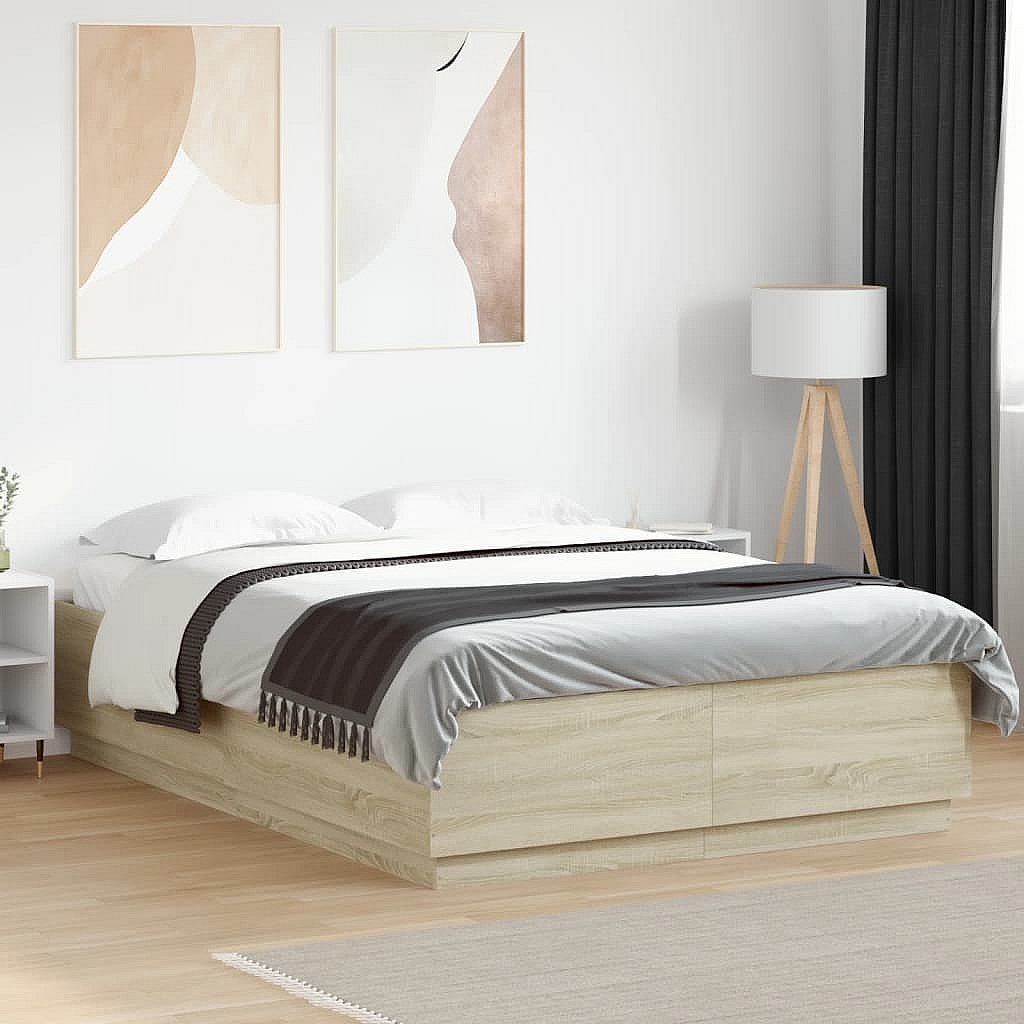 Estructura de cama con LED sin colchón roble Sonoma 160x200 cm