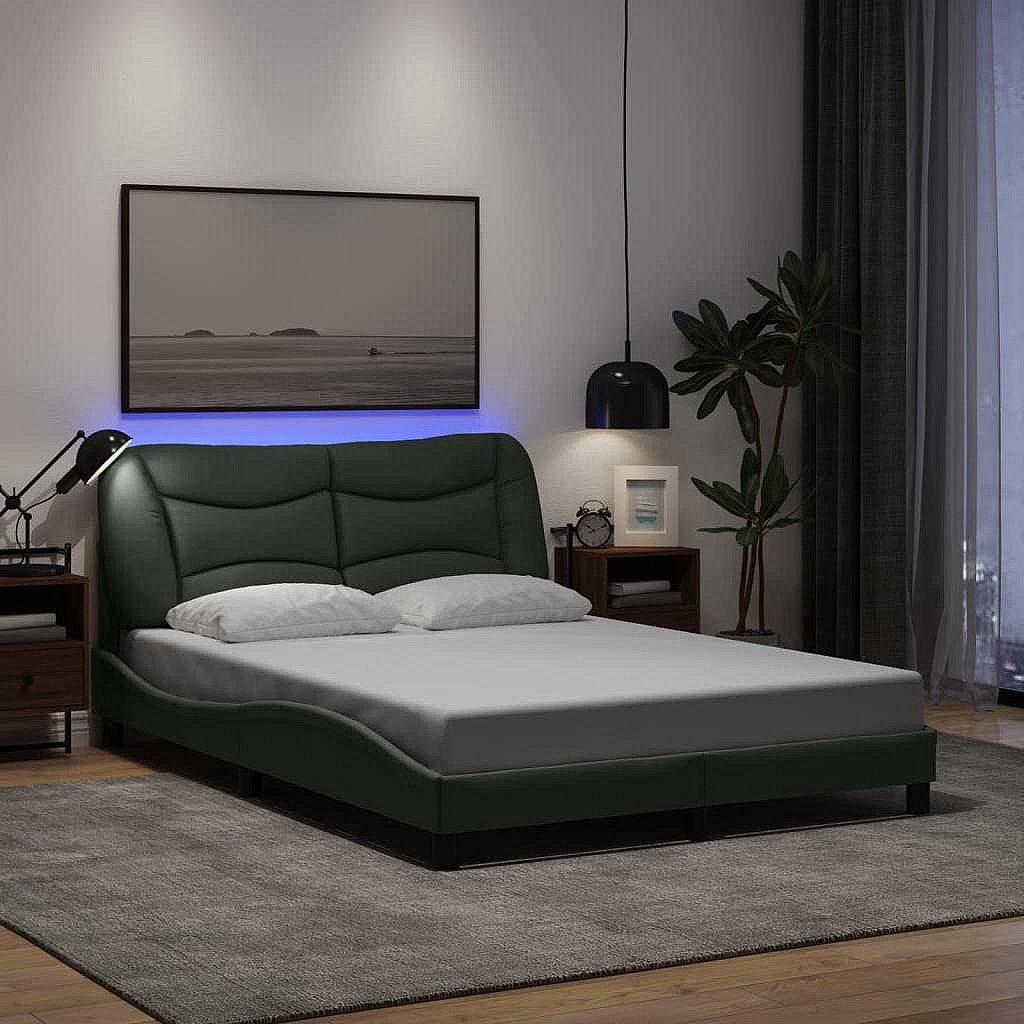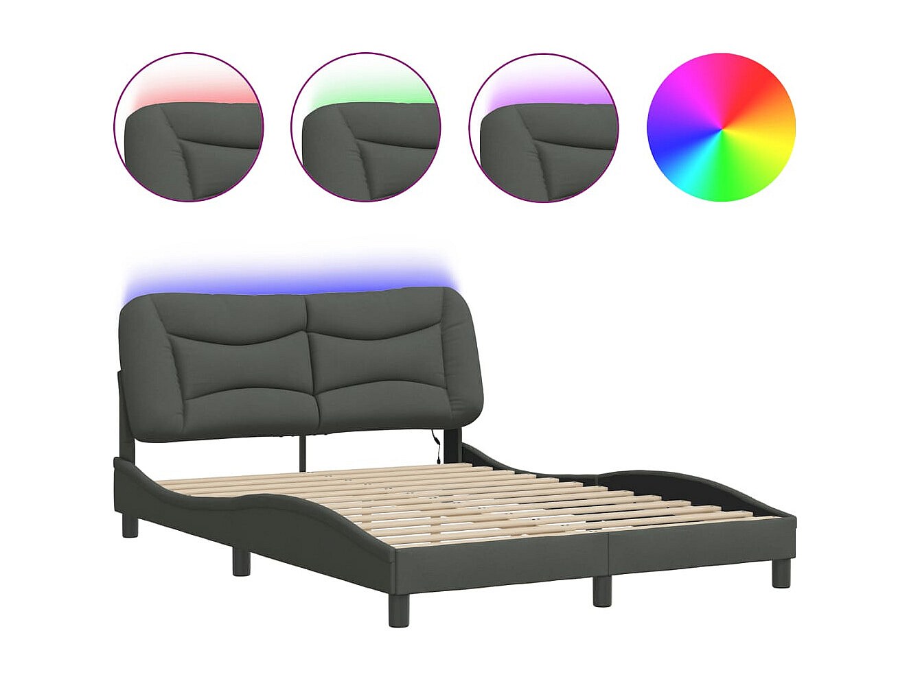 Estructura de cama con LED sin colchón tela gris oscuro 140x200 cm