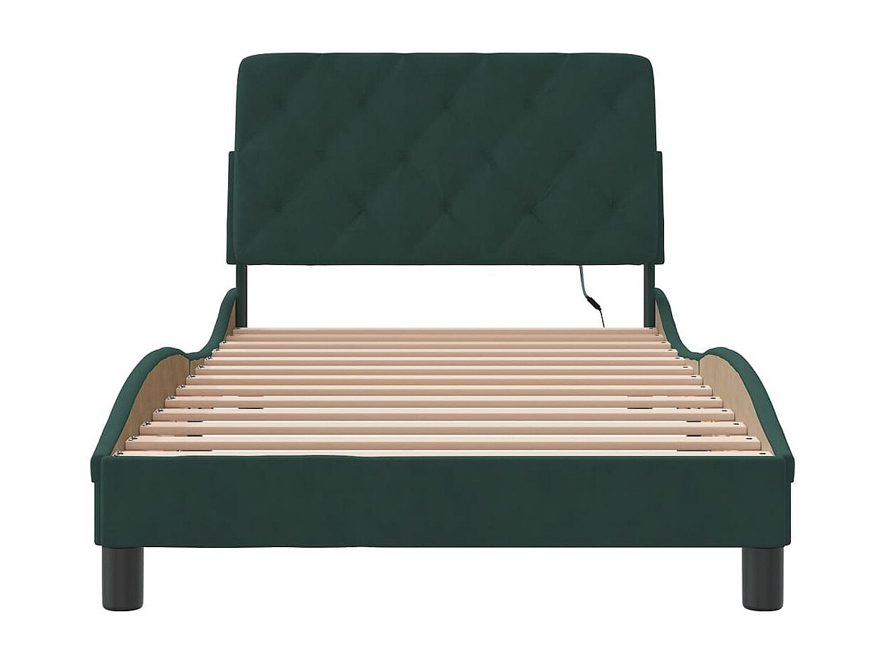 Estructura de cama con LED sin colchón verde oscuro 100x200cm terciopelo