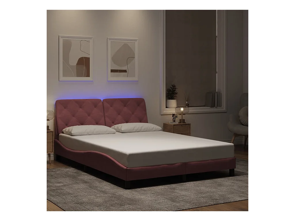 Estructura de cama con luces LED rosa 120x200 cm terciopelo