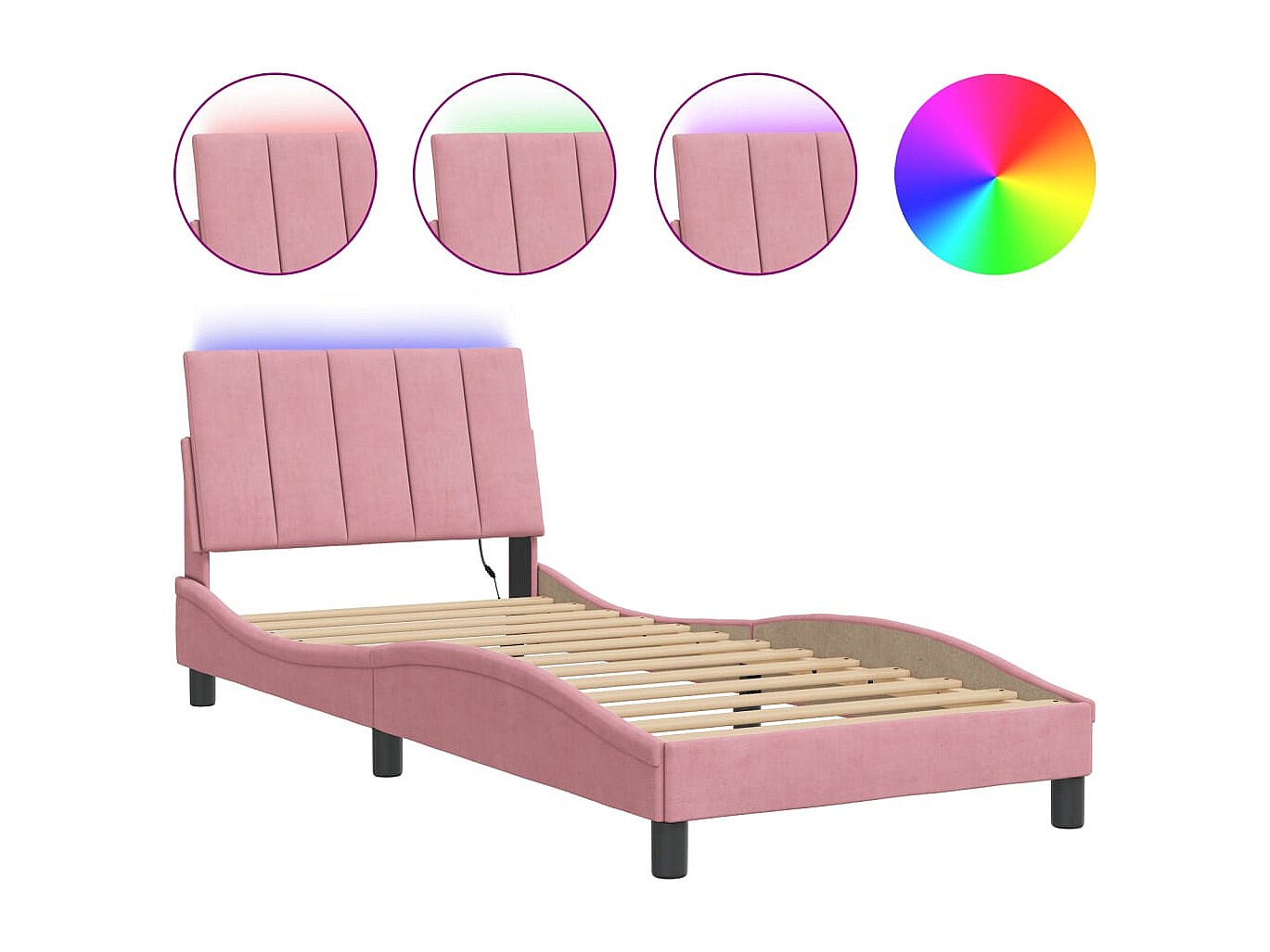 Estructura de cama con luces LED rosa 90x200 cm terciopelo