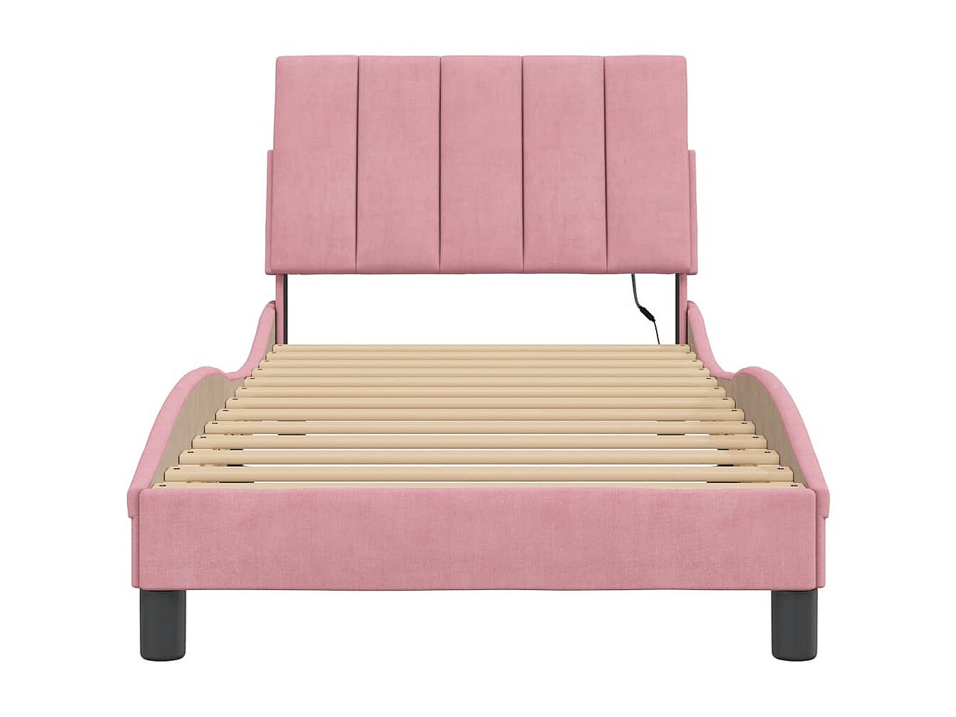Estructura de cama con cabecero de terciopelo rosa 90x200 cm