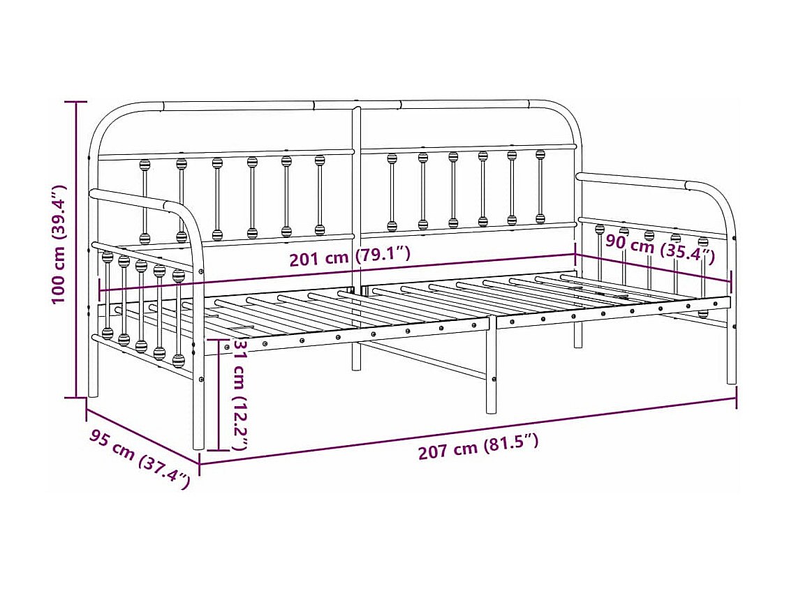 Cama -90x200 cm con cabecero metal negro YOE74935