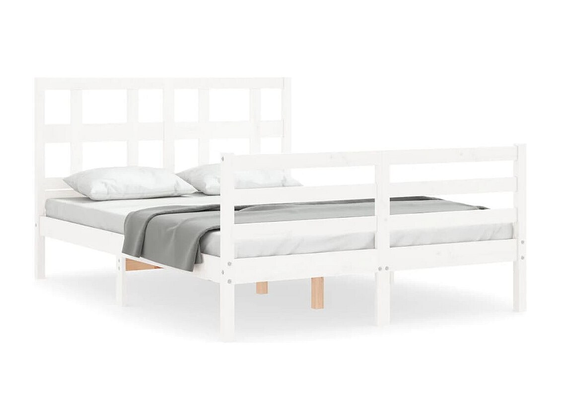 Estructura de cama de madera maciza blanca sin colchón