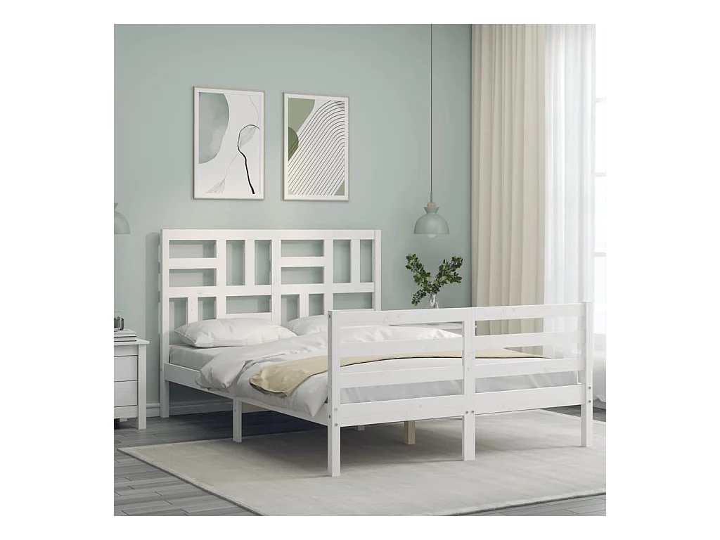 Estructura de cama sin colchón de madera maciza de pino blanco