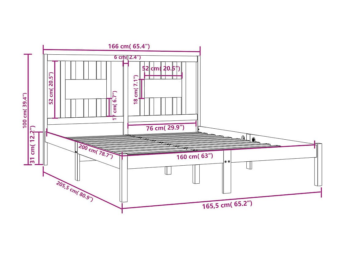 Estructura de cama de madera maciza sin colchón 160x200 cm