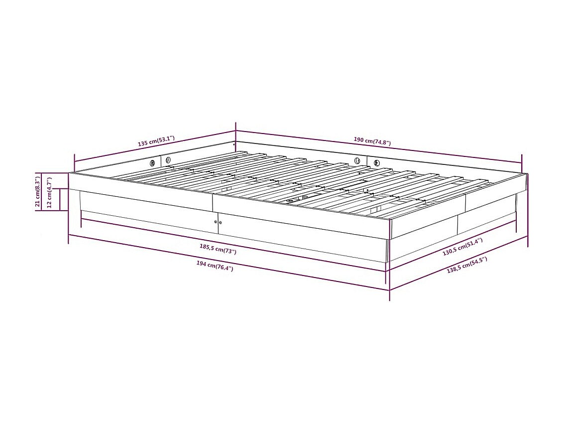 Estructura de cama sin colchón 135x190 cm madera maciza de pino