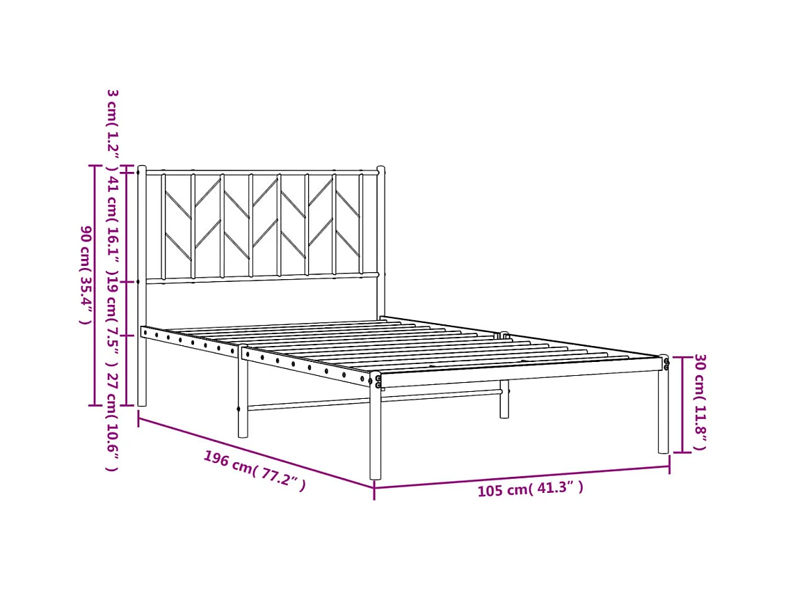 Estructura de cama de metal con cabecero blanco 100x190 cm