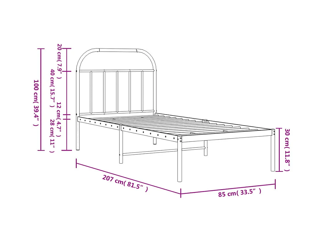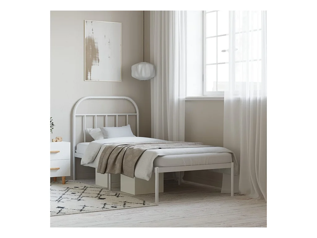 Estructura de cama de metal con cabecero blanco 80x200 cm