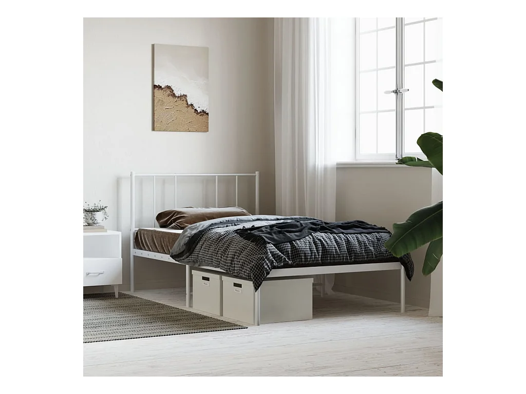 Estructura de cama de metal con cabecero blanco 80x200 cm