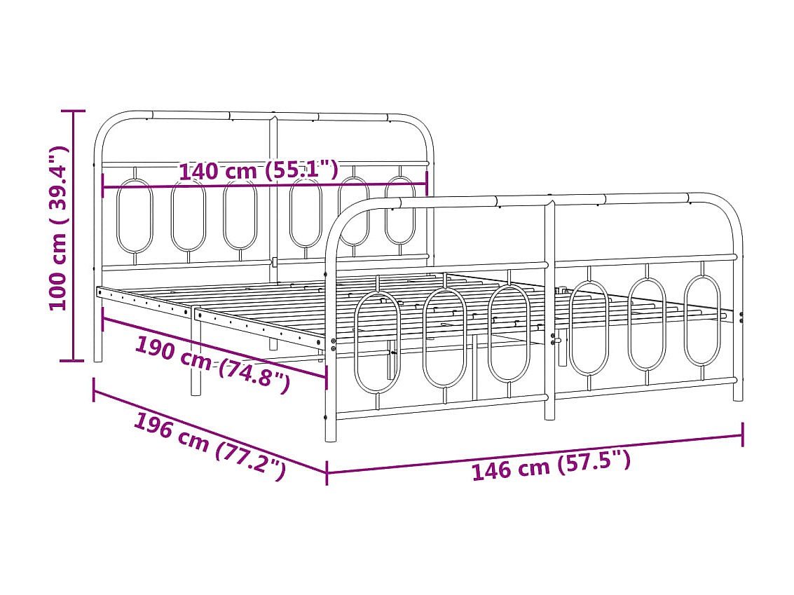 Estructura de cama de metal sin colchón con pie de cama negro 140x190cm