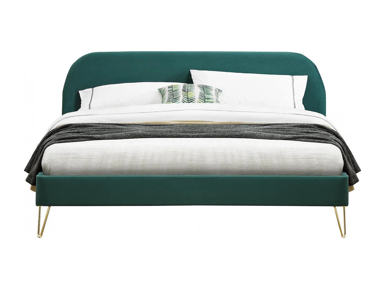 Cama de terciopelo verde y latón 160x200 PHOENIX