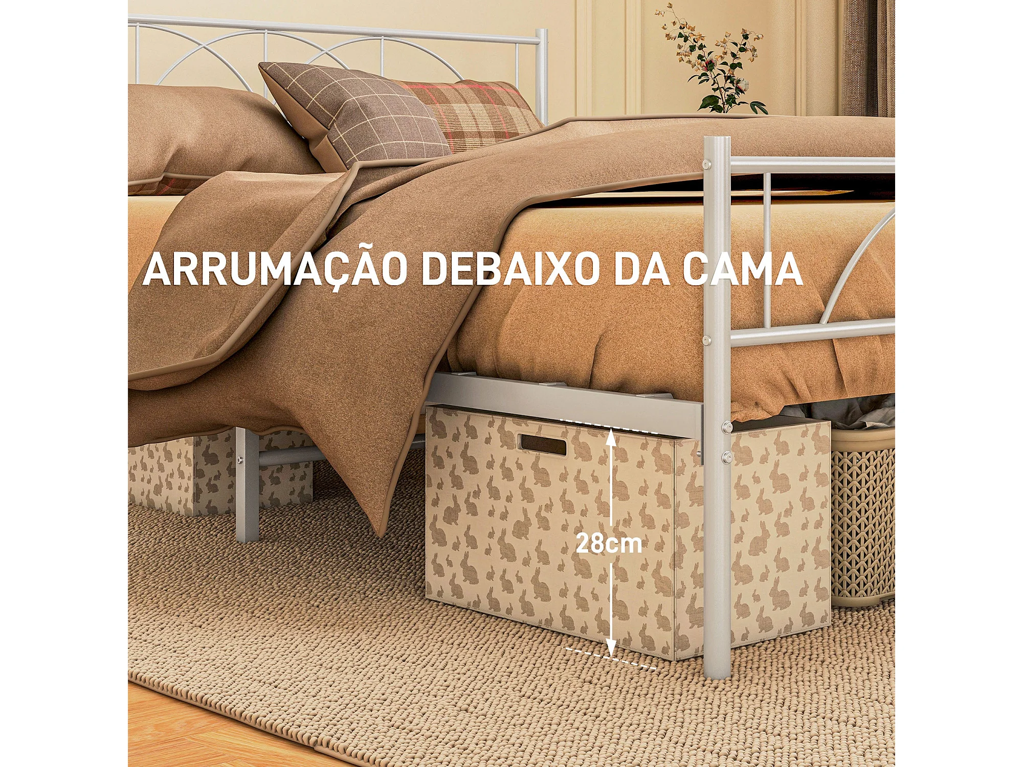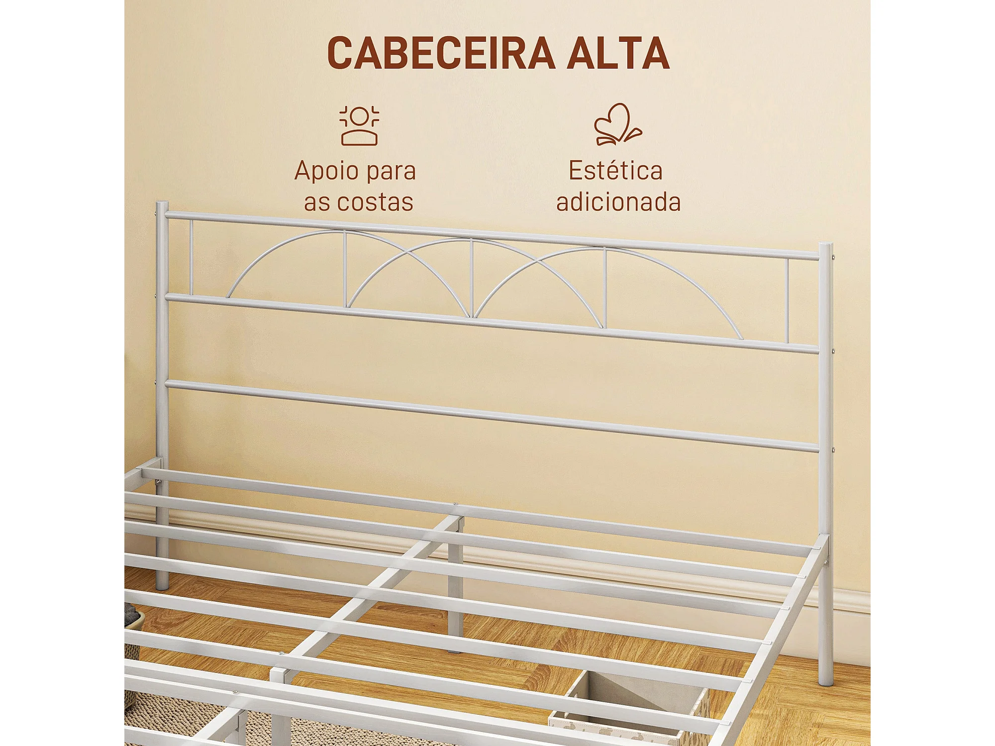 Estructura de cama doble Alaska Homcom con cabecero acero blanco 135x190 cm
