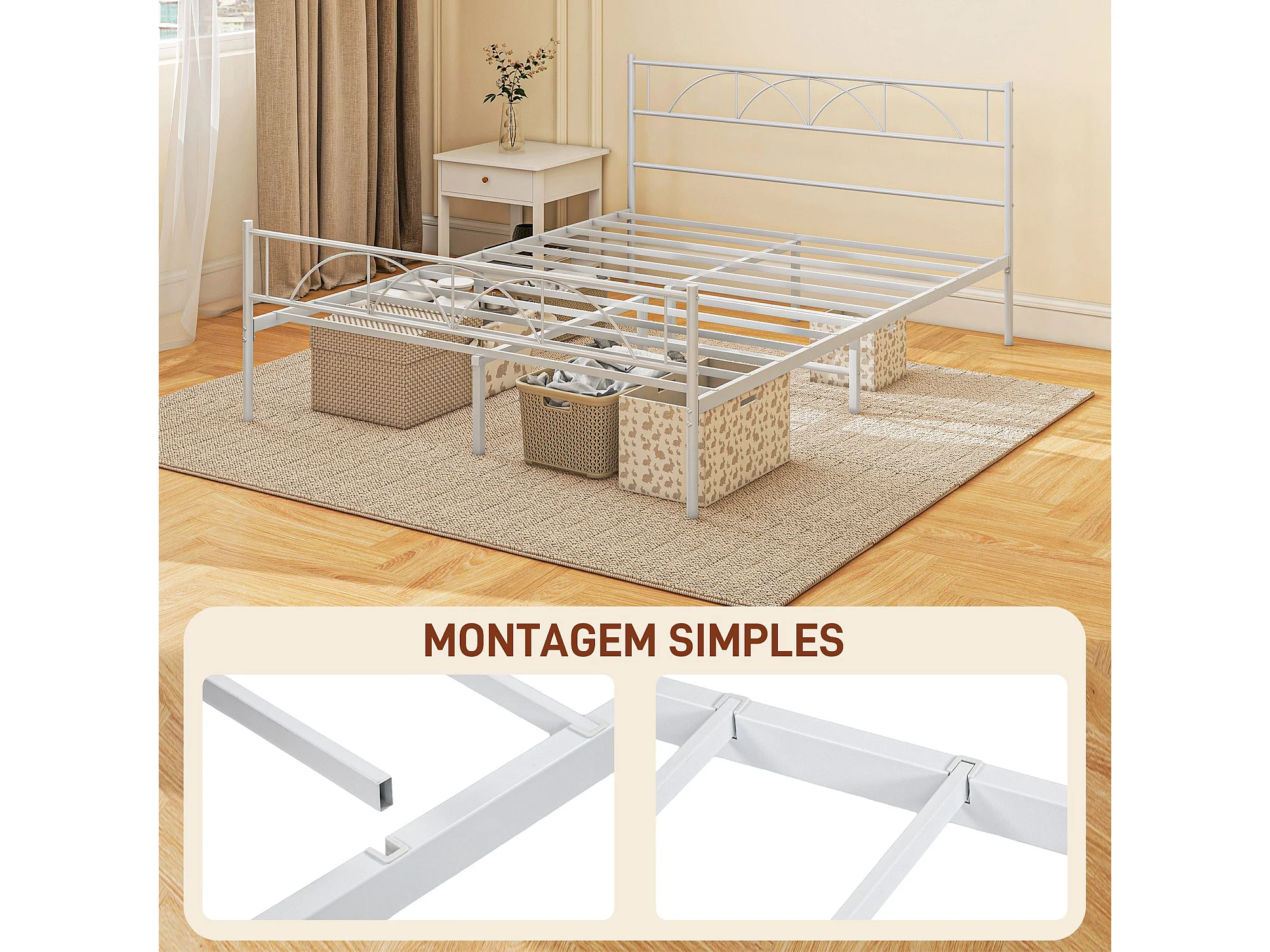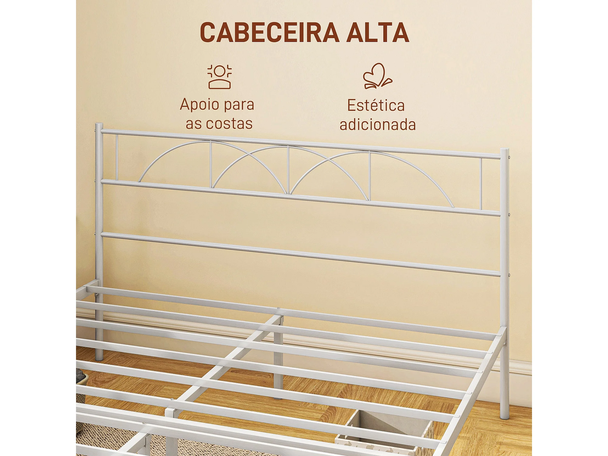 Estructura de cama doble Alaska Homcom con cabecero acero blanco 150x200 cm