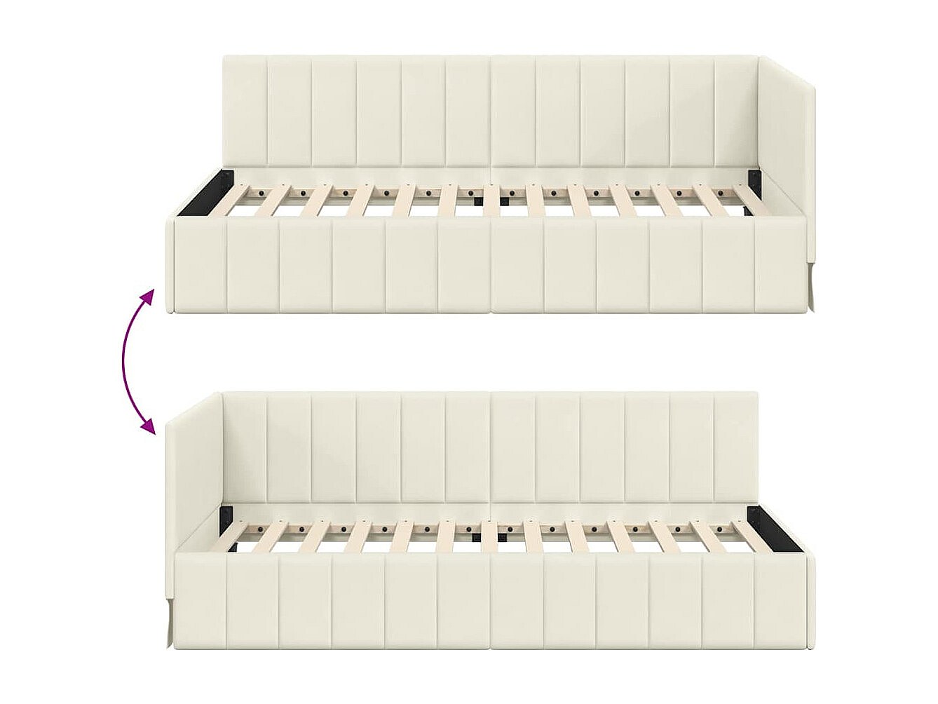 Estructura de cama en esquina Crema 90 x 200 cm Terciopelo