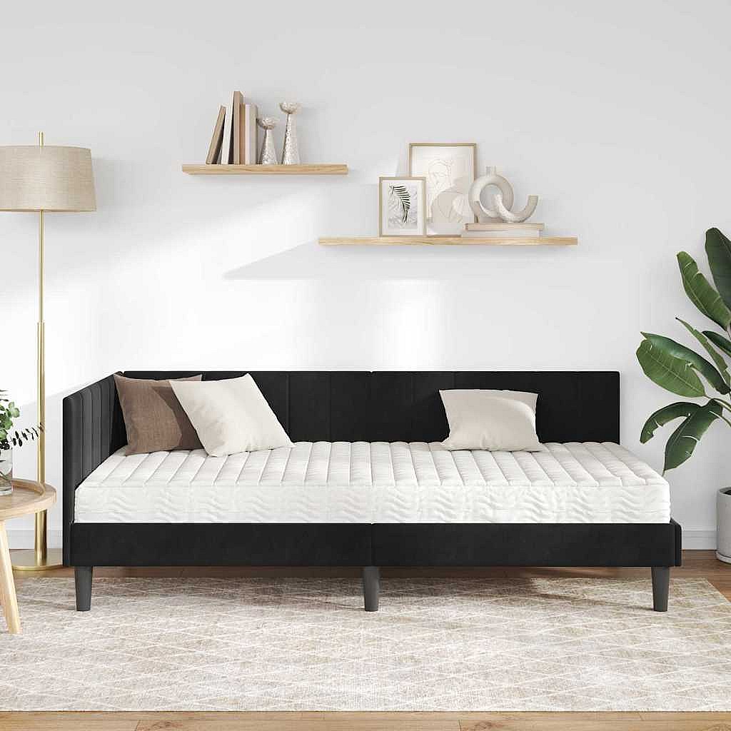 Estructura de cama en esquina Negro 100 x 200 cm Terciopelo