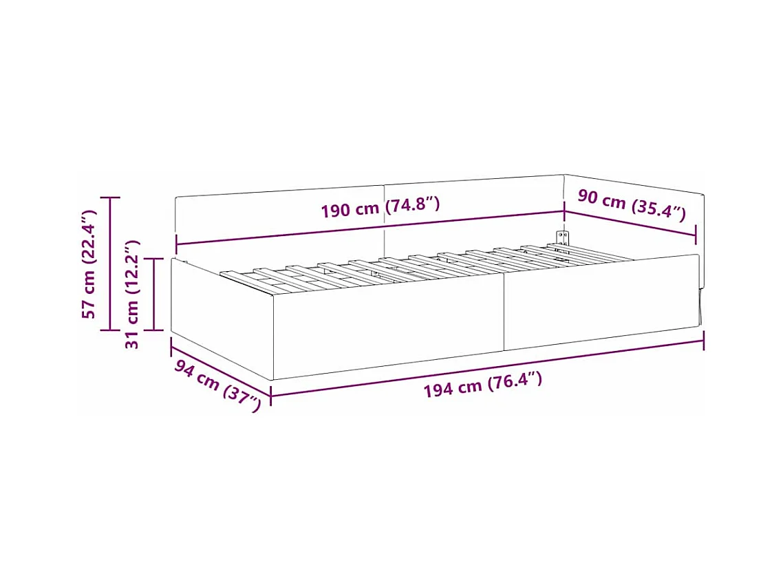 Estructura de cama en esquina Gris oscuro 90 x 190 cm tela