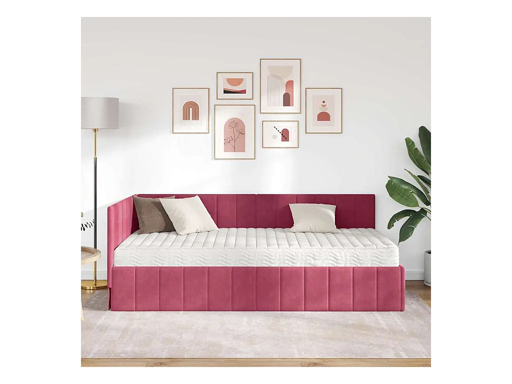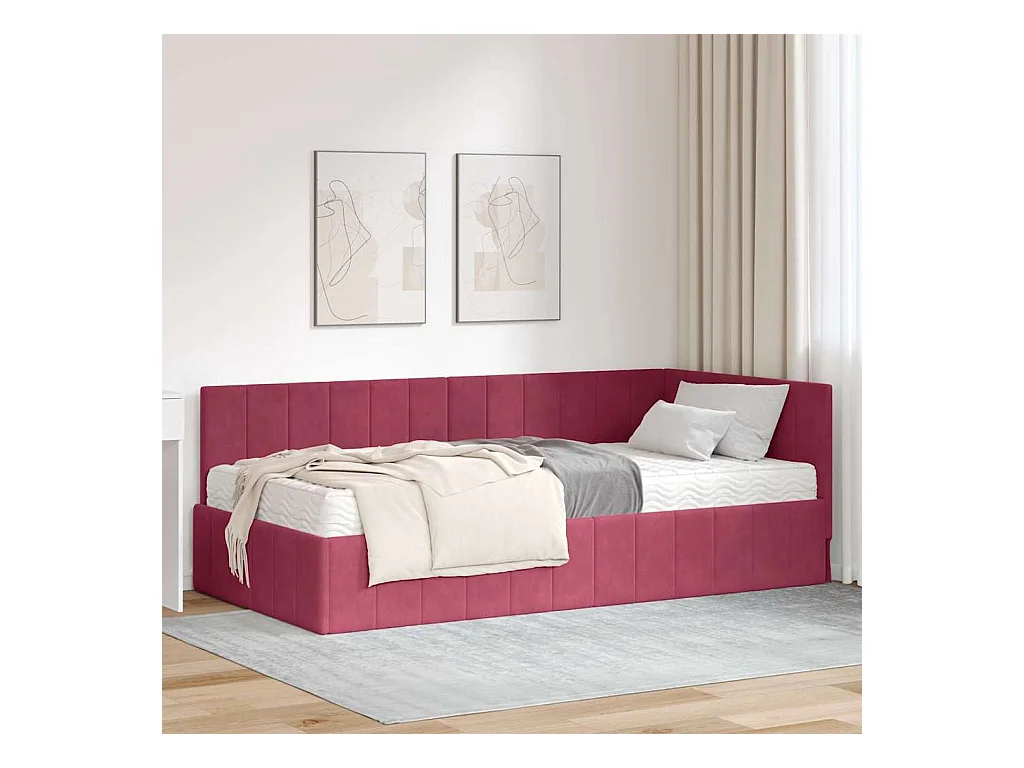 Estructura de cama en esquina Otro Rojo vino tinto 90 x 190 cm