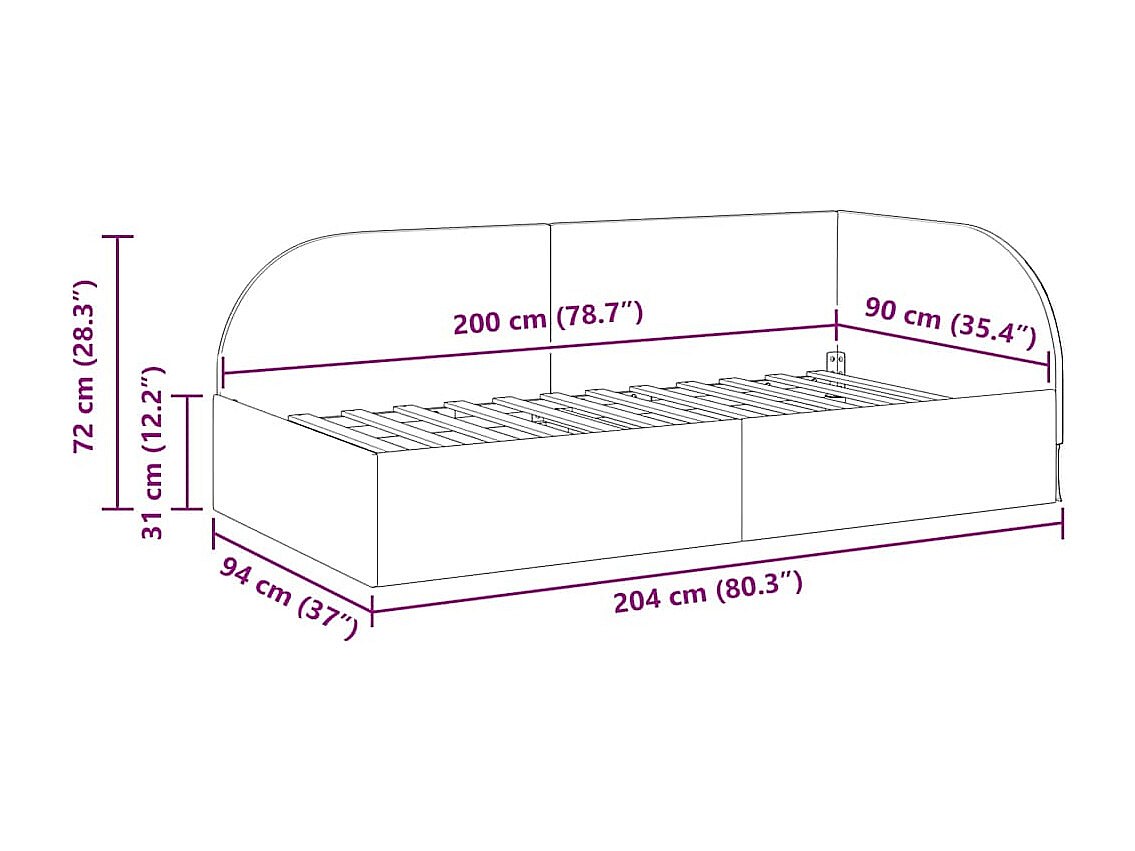 Estructura de Cama Esquinera Manual Rojo vino tinto 90 x 200 cm