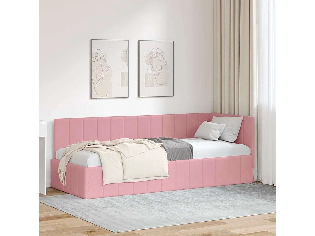 Estructura de cama en esquina Rosa 80 x 200 cm Terciopelo