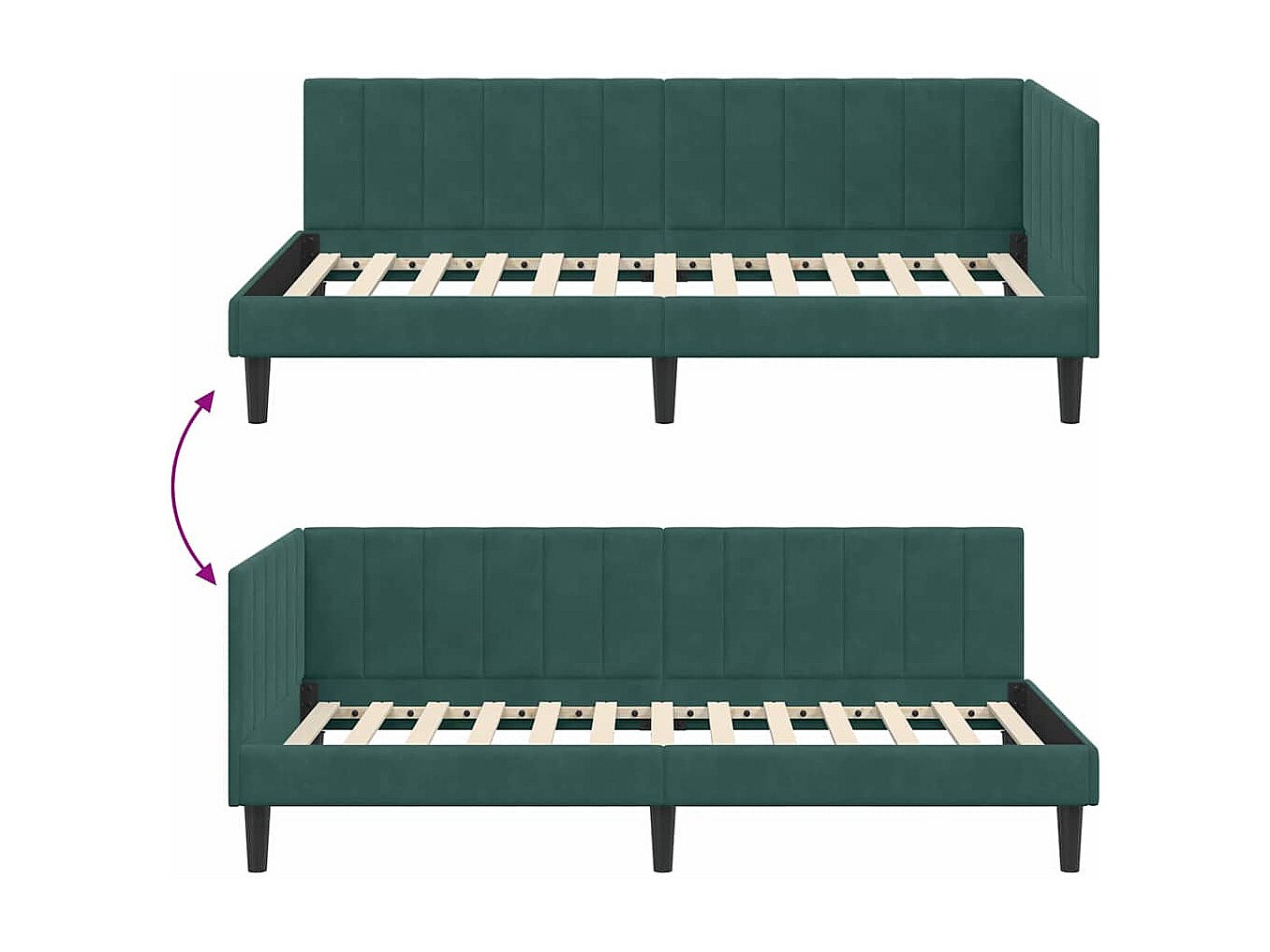 Estructura de cama en esquina Verde oscuro 90 x 190 cm