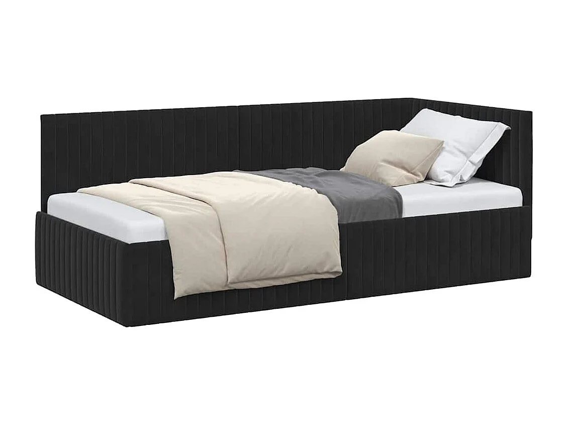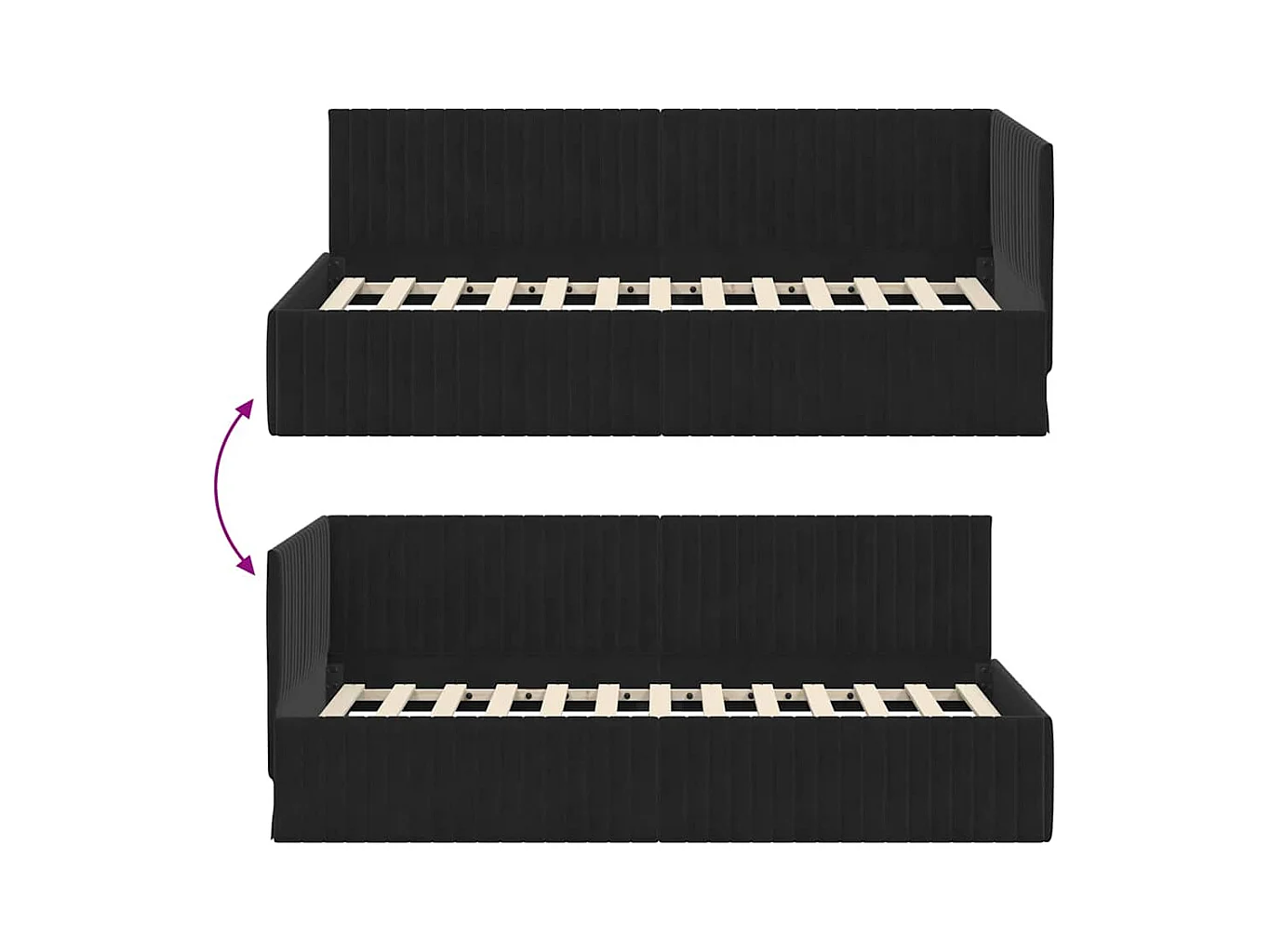 Estructura de cama esquinera con cabecero Terciopelo Negro 90 x 200 cm