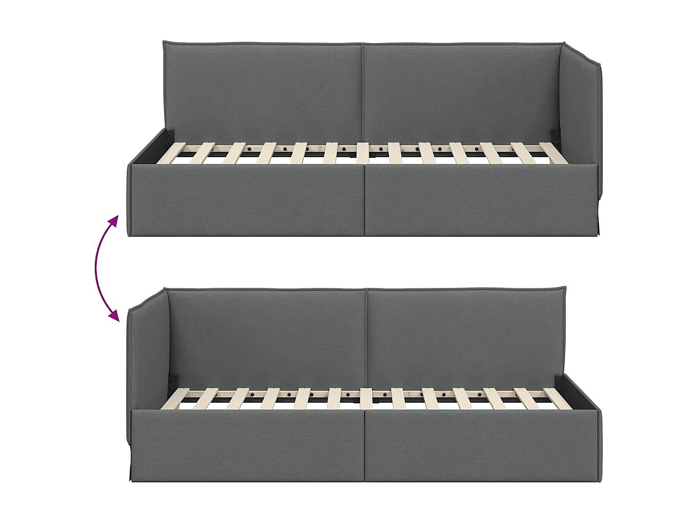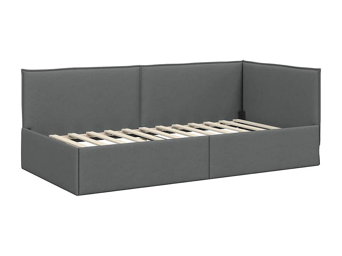 Estructura de cama esquinera gris oscuro de tela de 90 x 200 cm