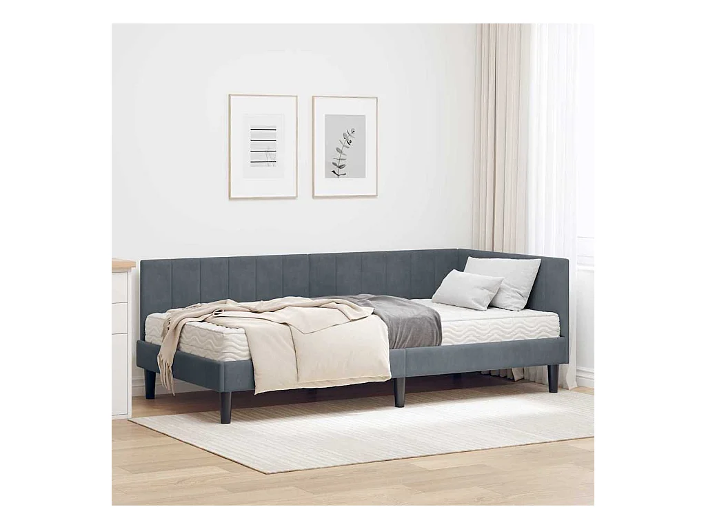 Estructura de cama esquinera gris oscuro de terciopelo de 90 x 190 cm