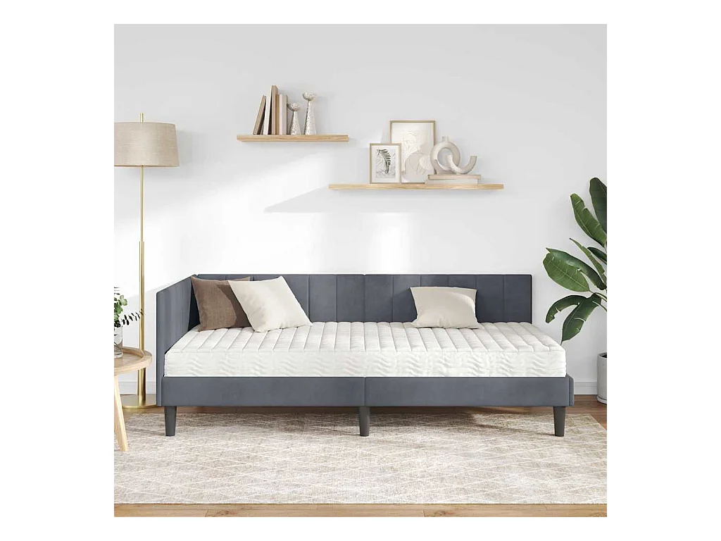 Cama con colchón de terciopelo gris claro de 90x190 cm.