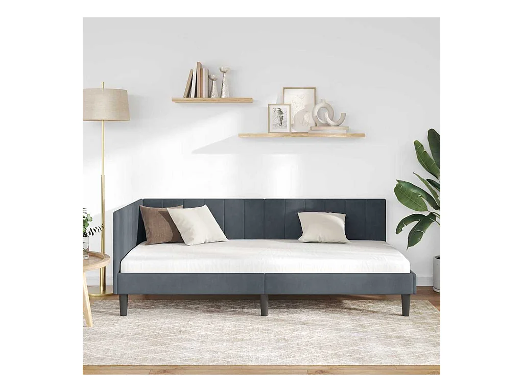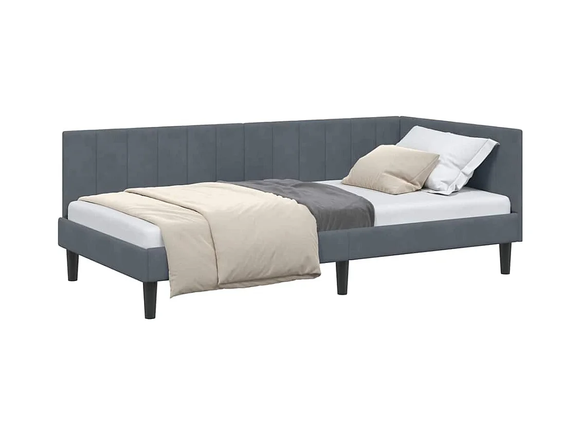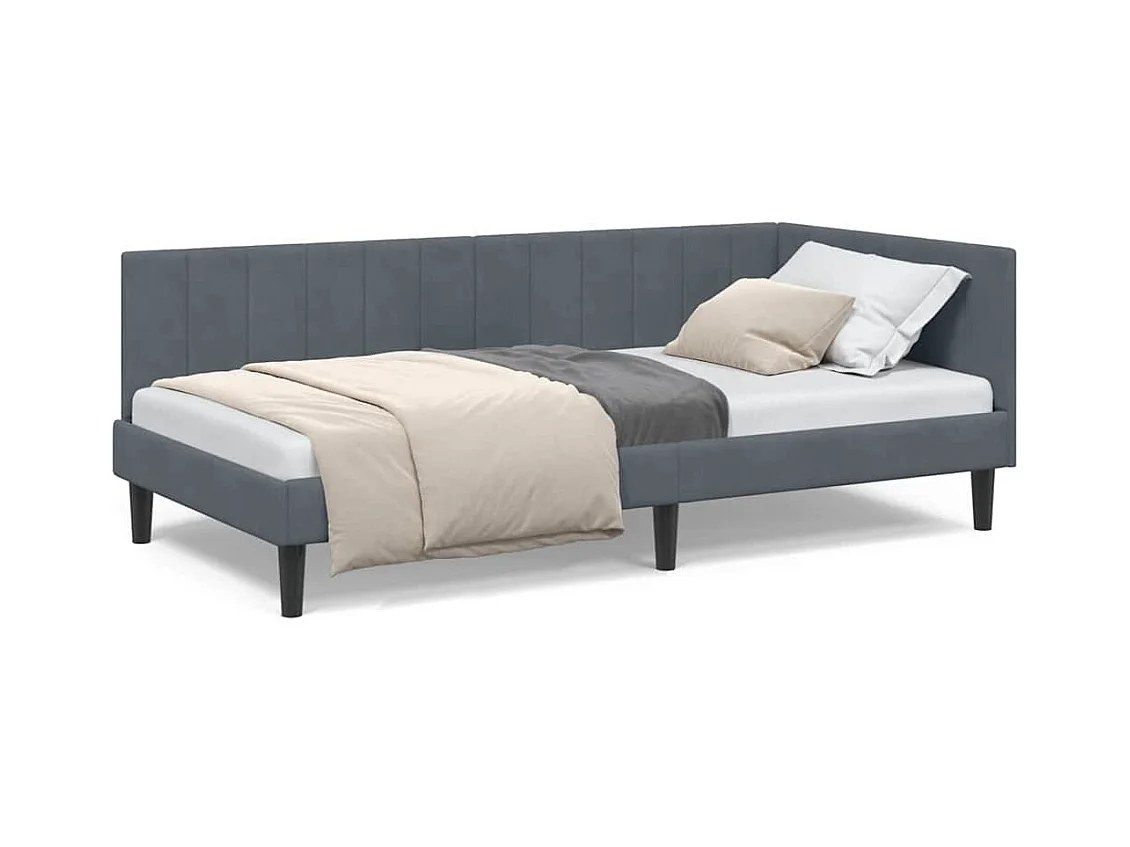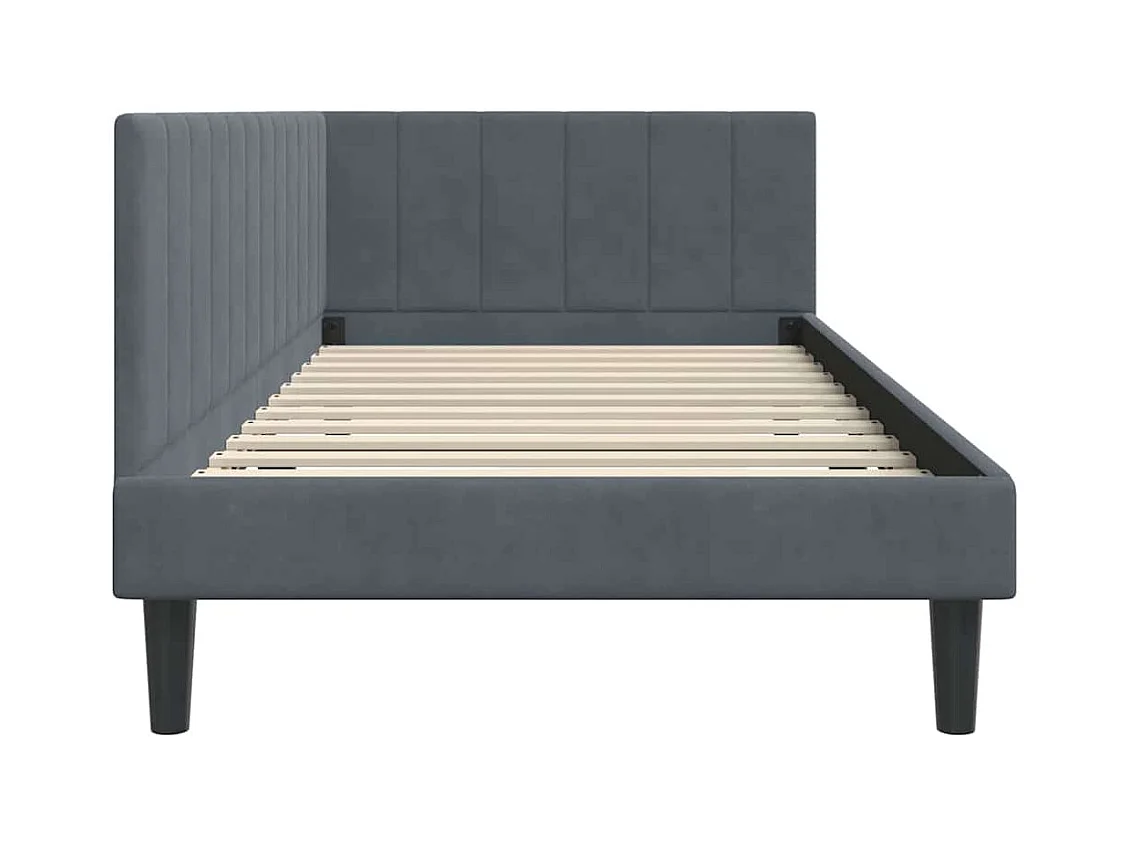 Estructura de cama esquinera gris oscuro de terciopelo de 90 x 190 cm