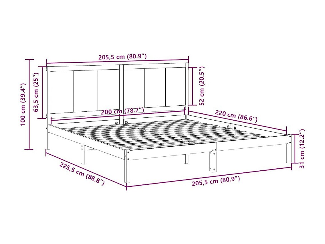 Estructura de cama extra larga sin colchón 200x220 cm madera maciza
