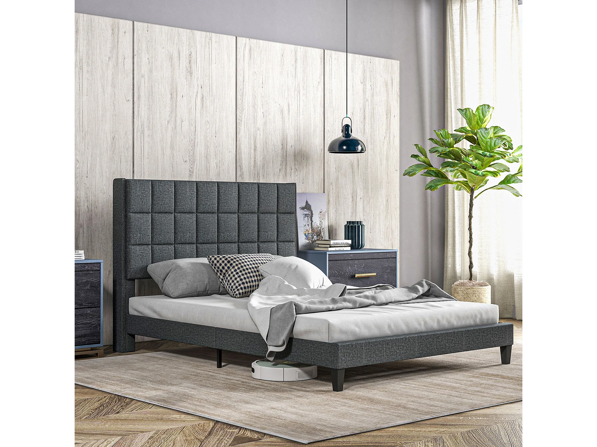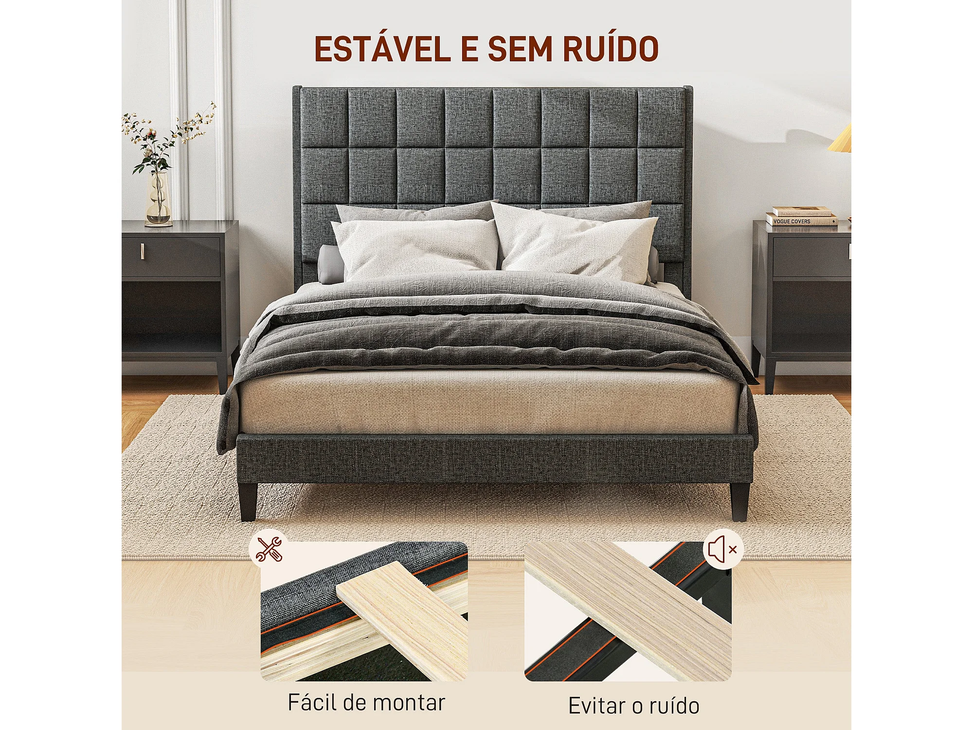 Estructura de cama Filo Homcom con cabecero gris 135x190 cm