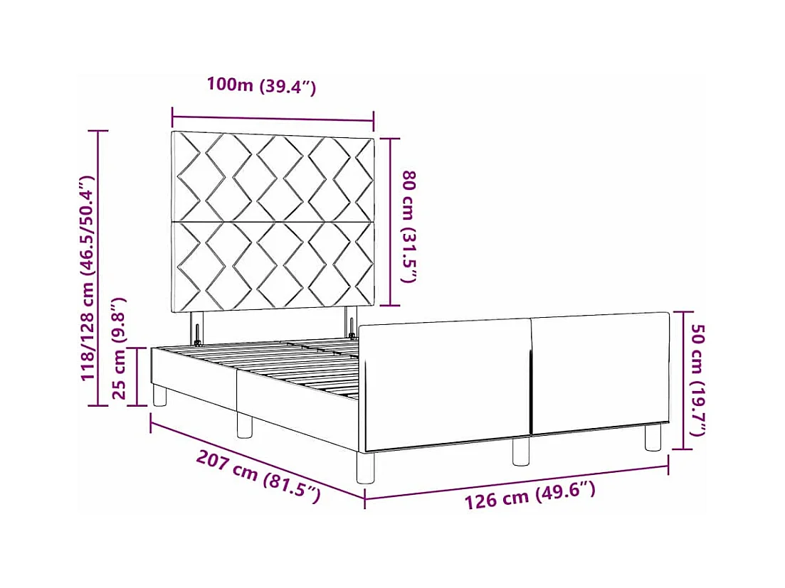 Cama con Somier con colchón Gris oscuro 100 x 200 cm tela