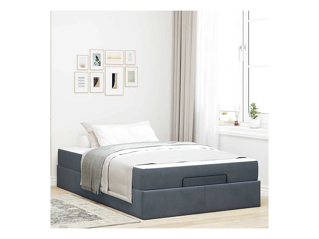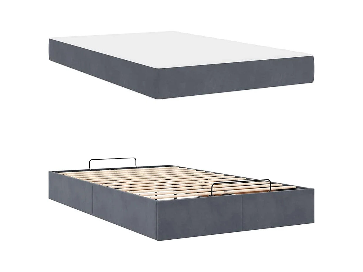 Estructura cama otomana colchón terciopelo gris claro 120x200cm