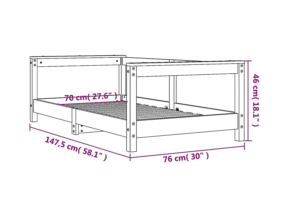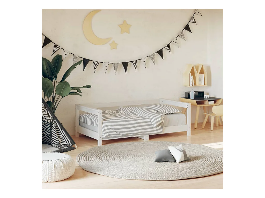 Estructura de cama infantil blanca de madera maciza de pino 70x140 cm
