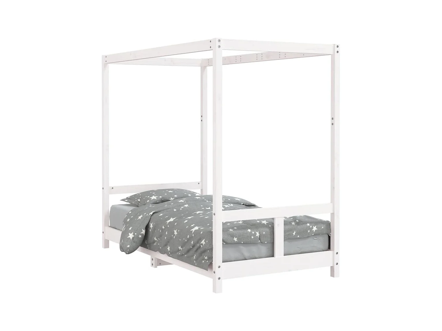 Estructura de cama infantil blanca de madera maciza de pino 80x160 cm