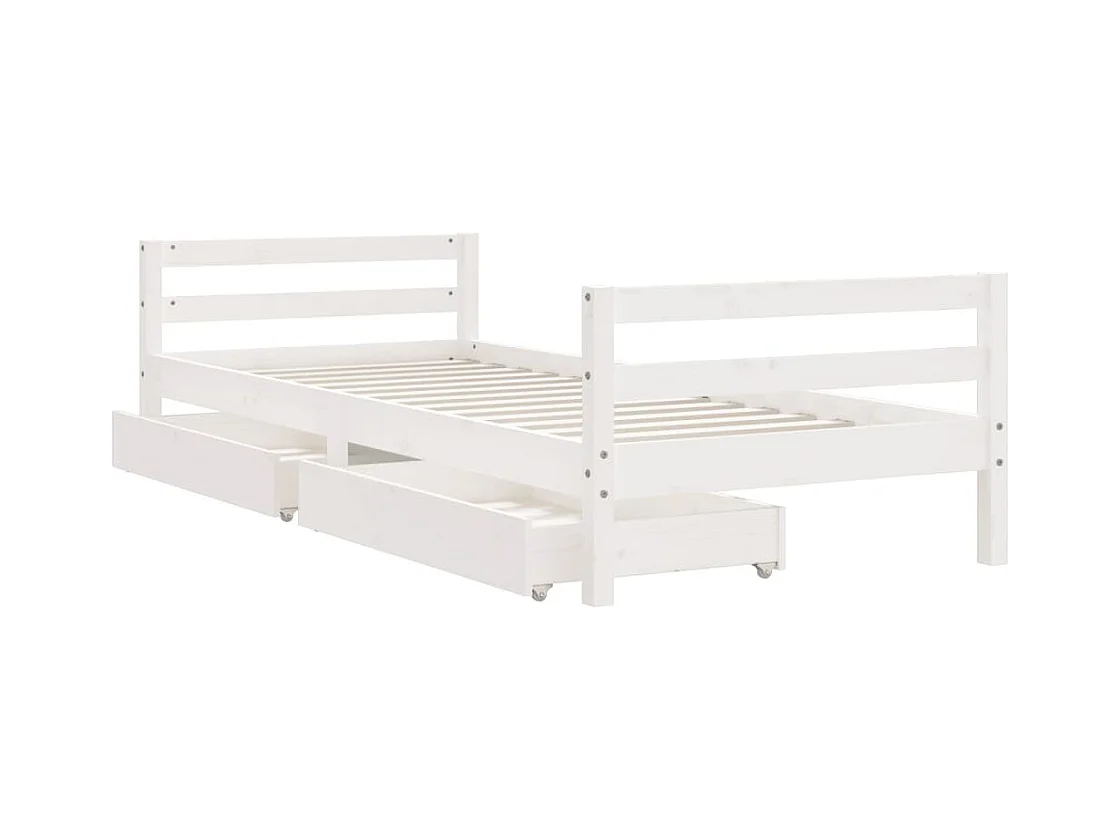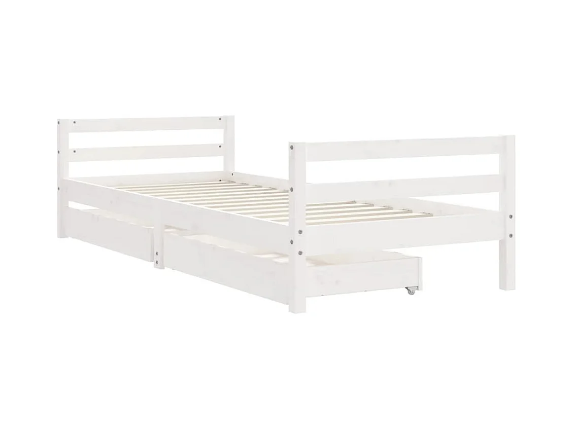 Estructura de cama infantil con cajones de madera maciza de pino blanco 80x200 cm