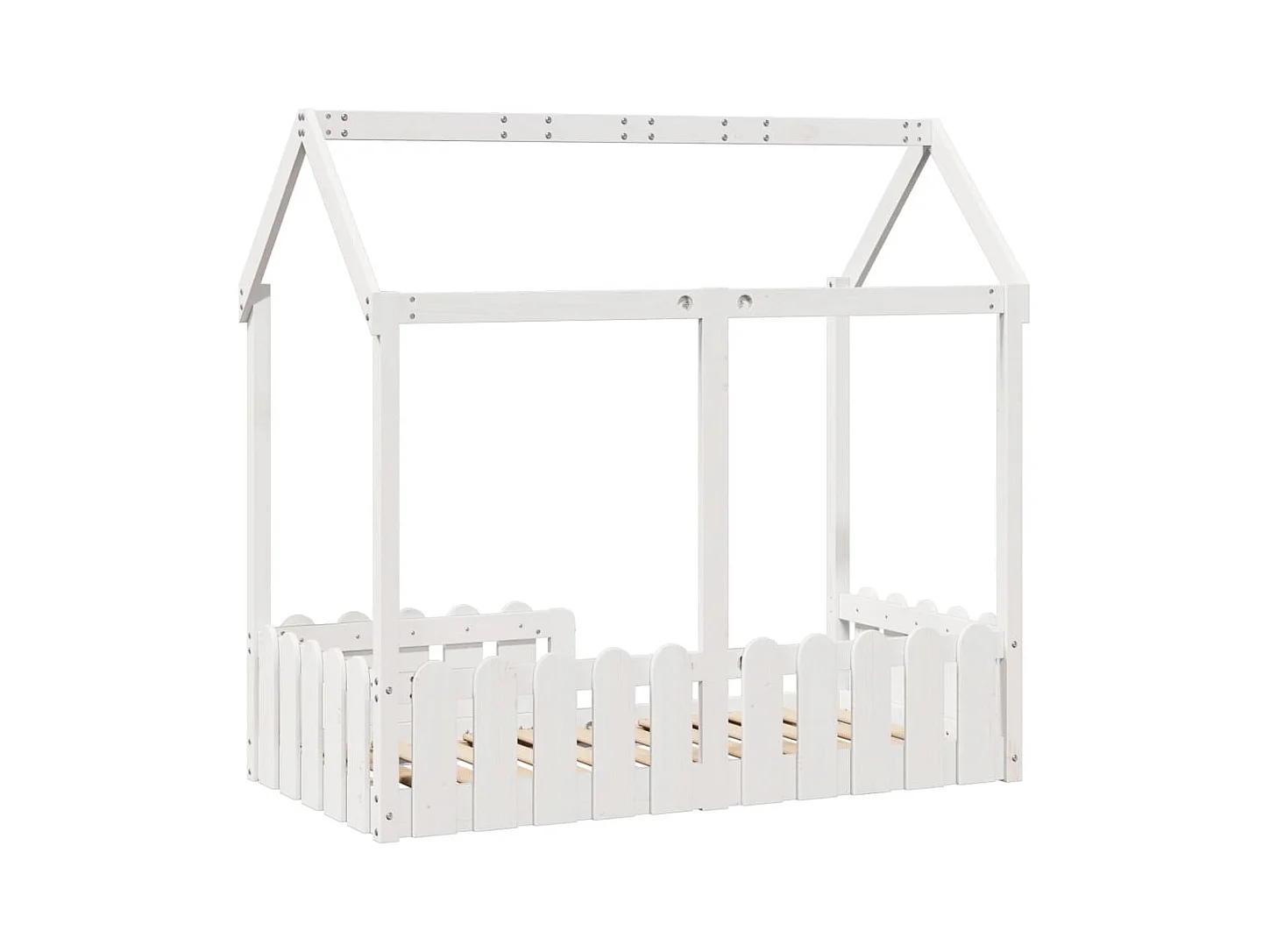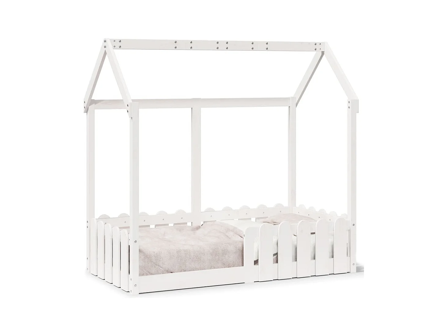 Cama con forma de casa para niños madera maciza blanco 70x140cm