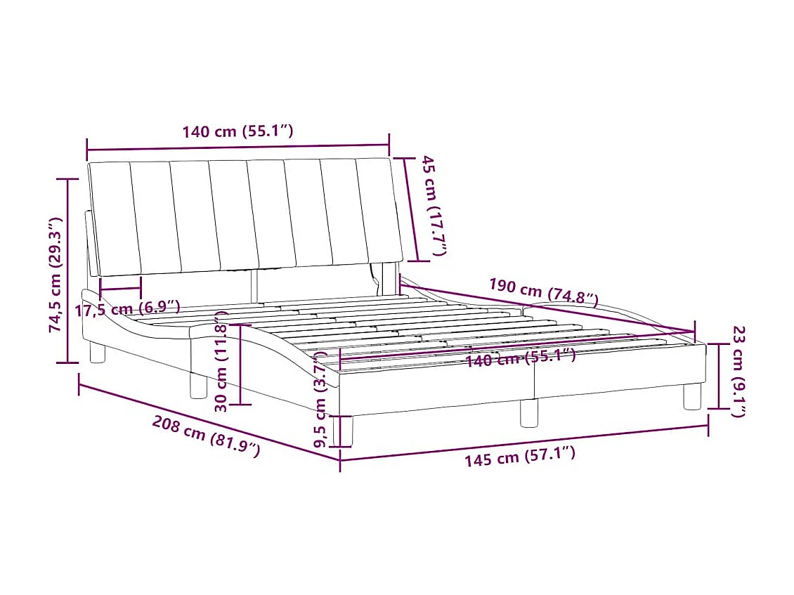 Cama Tamaño 140x190cm (doble estándar) 140x200cm