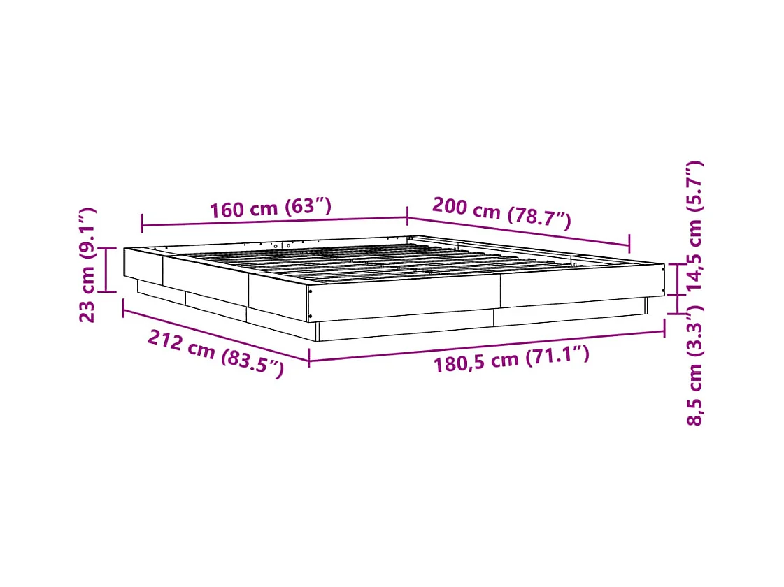 Estructura de cama madera de ingeniería gris hormigón 160x200cm