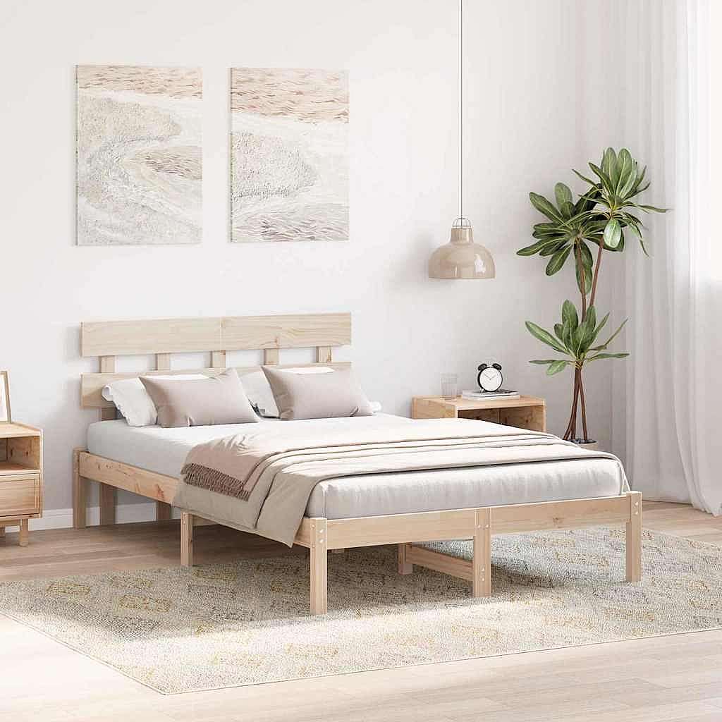 Estructura de cama marrón 135 x 190 cm madera maciza de pino