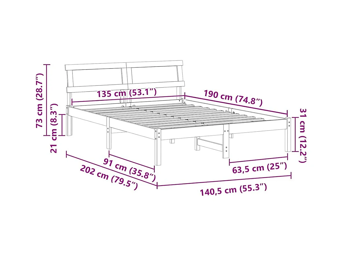 Estructura de cama Marrón 135 x 190 cm Madera maciza de Pino