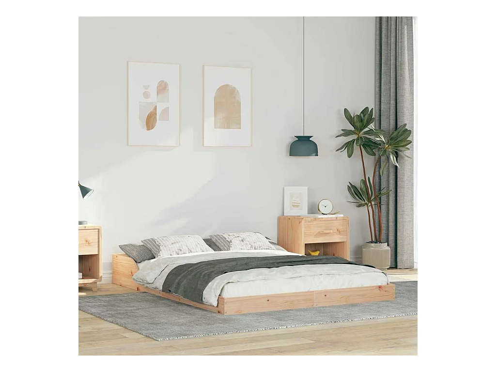 Estructura de cama Marrón 135 x 190 cm Madera maciza de pino