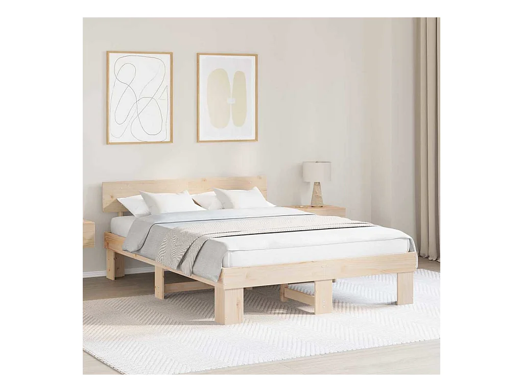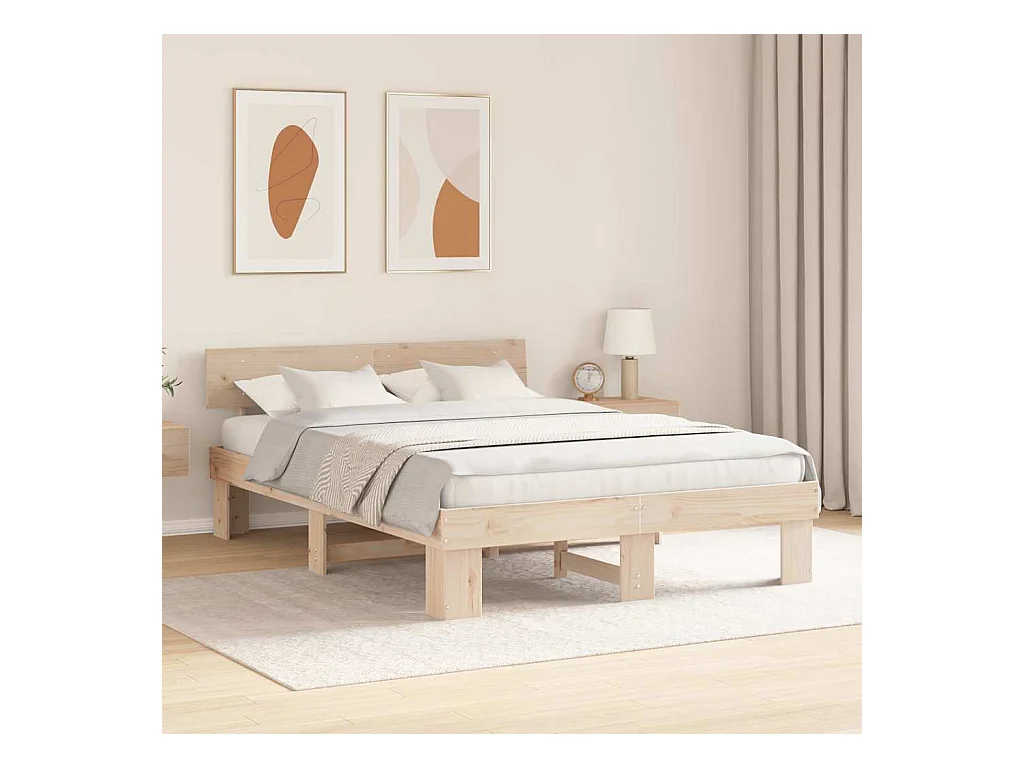 Estructura de cama Marrón 150 x 200 cm Madera maciza de Pino