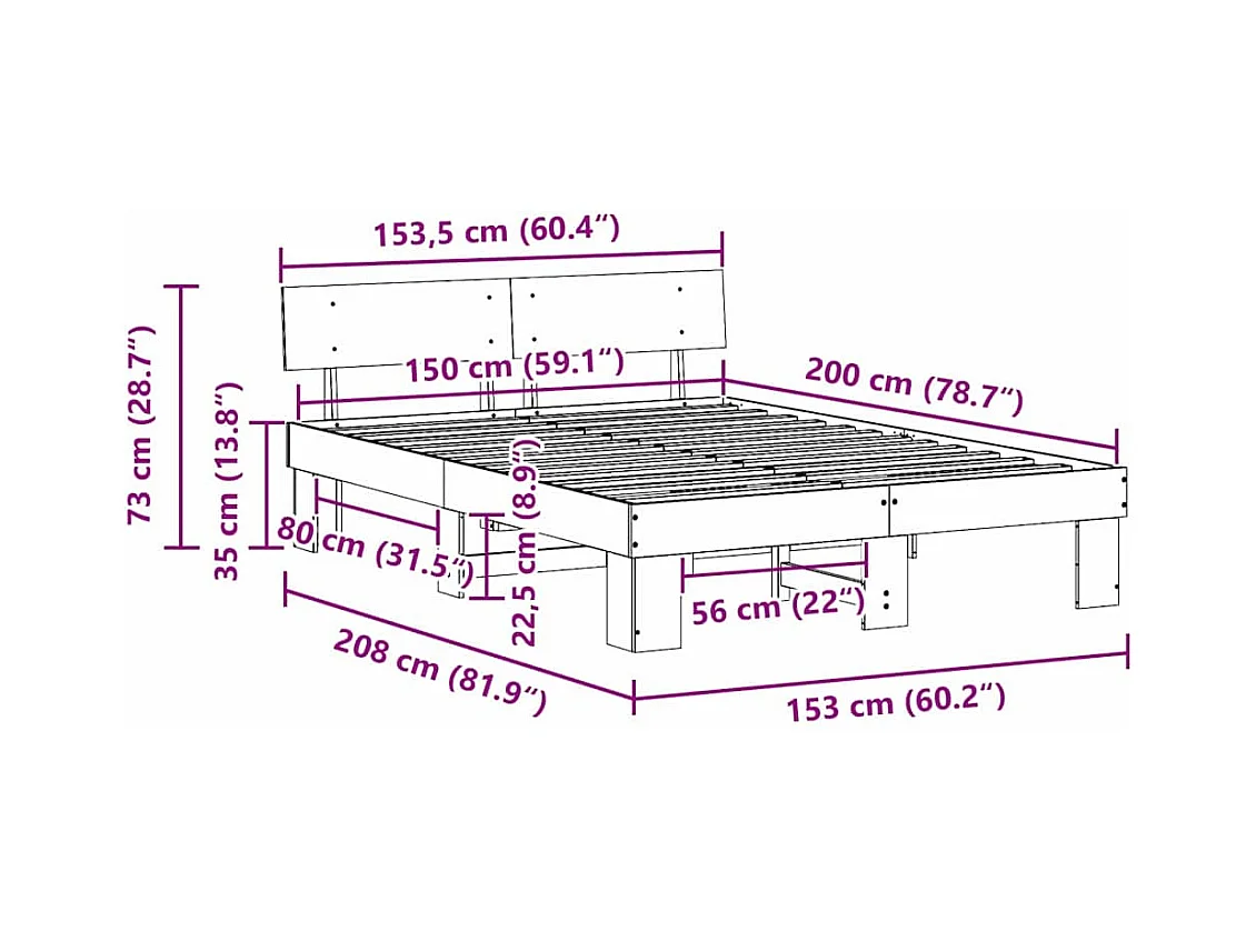 Estructura de cama Marrón 150 x 200 cm Madera maciza de pino
