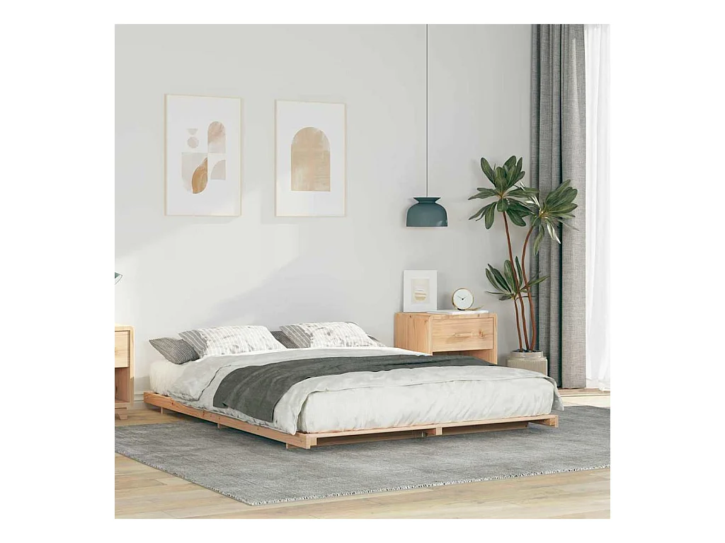 Estructura de cama Natural 160 x 220 cm Madera maciza de Pino