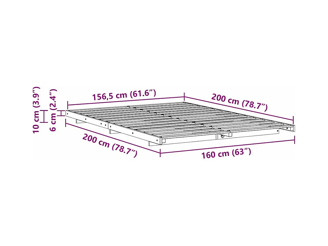 Estructura de cama sin colchón madera maciza de pino 160x200 cm