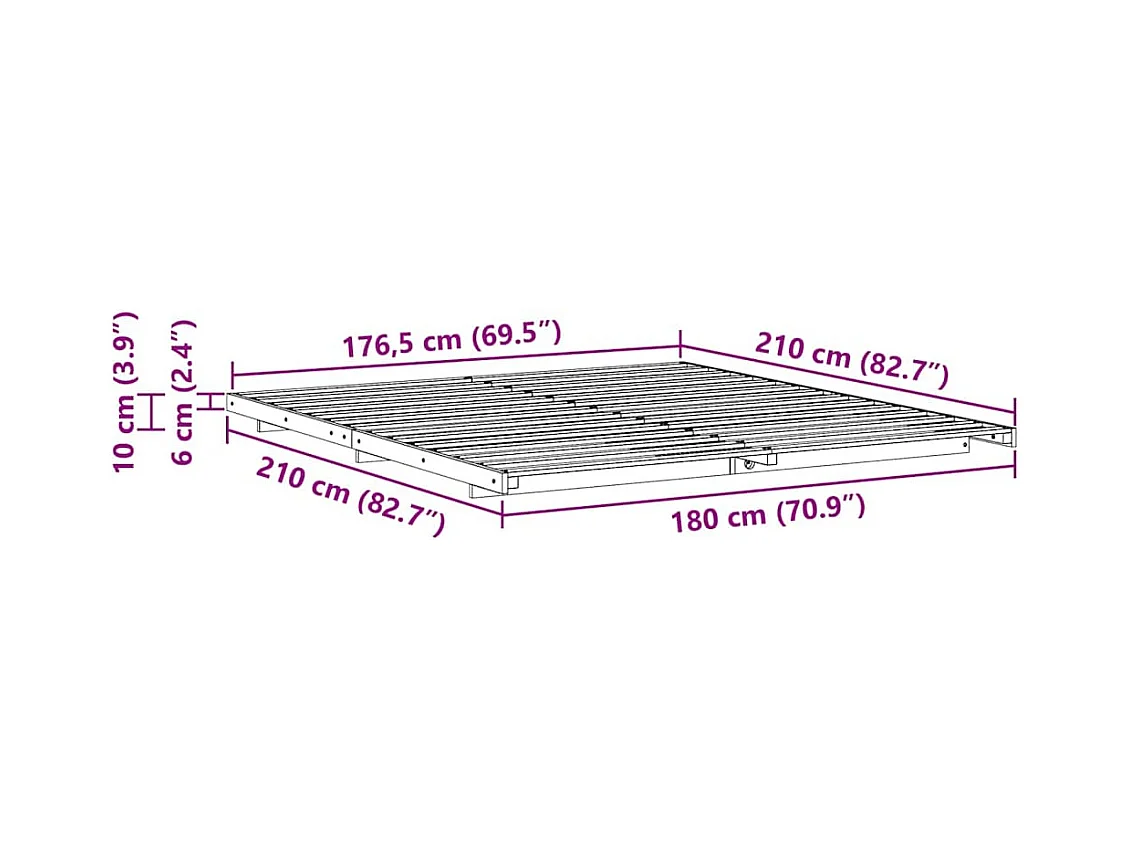 Estructura de cama sin colchón madera maciza de pino 180x200 cm