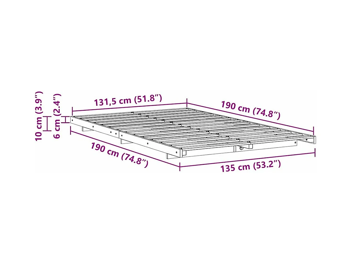 Estructura de cama Marrón 135 x 190 cm Madera maciza de Pino